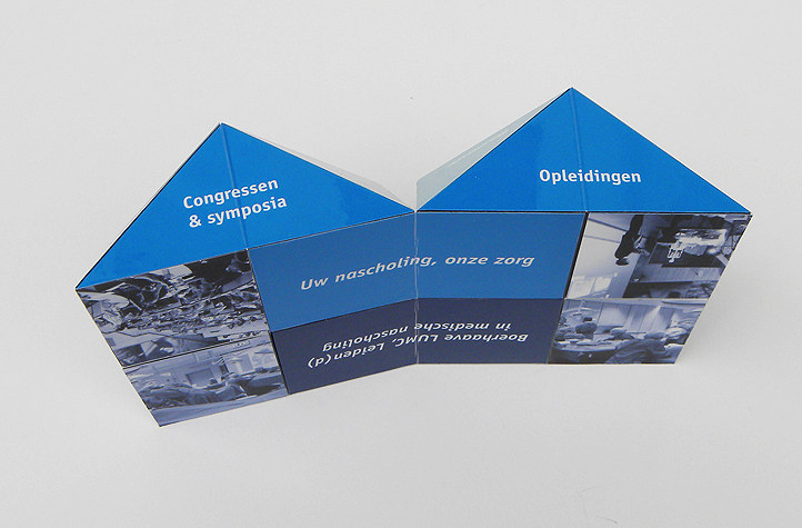 De Cube zich ontvouwt en toon de diamant met op alle facetten afbeeldigen en of teksten. Hij verandert in een handomdraai, via een prisma tot zijn diamantvorm. Een mooi, leuk hebbeding en ideaal als reclame uiting.